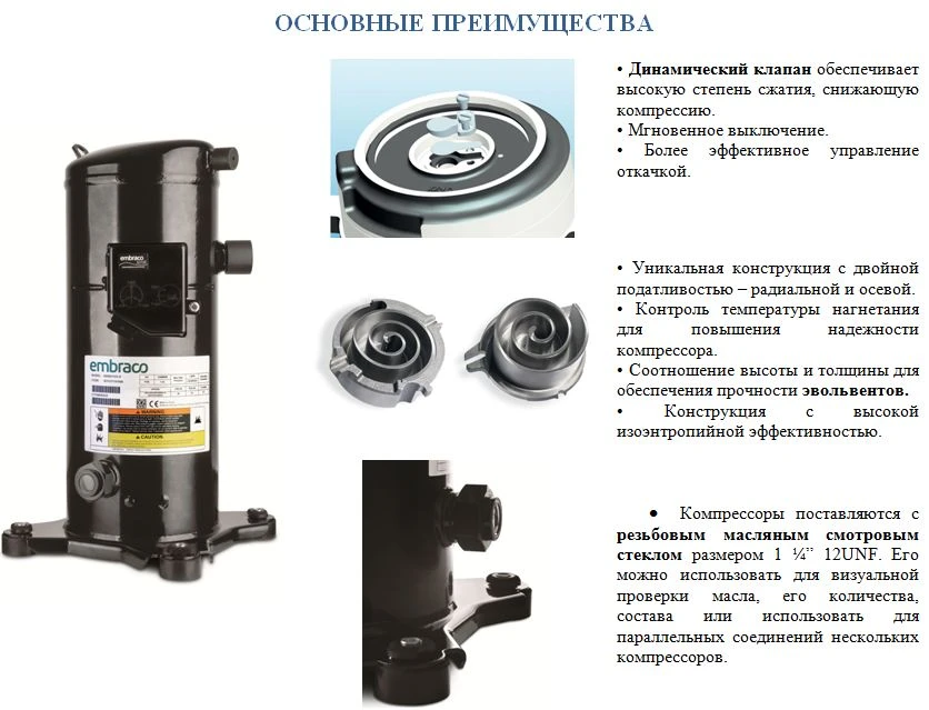 Спиральные компрессоры MBP разработаны по проверенной и надежной технологии охлаждения для среднетемпературных применений. Модели MBP способны работать при температуре испарения до -30 ° C и могут применяться в коммерческих и промышленных холодильных установках, холодильных шкафах для свежих продуктов, льдогенераторах, охладителях молока и холодильных камерах.