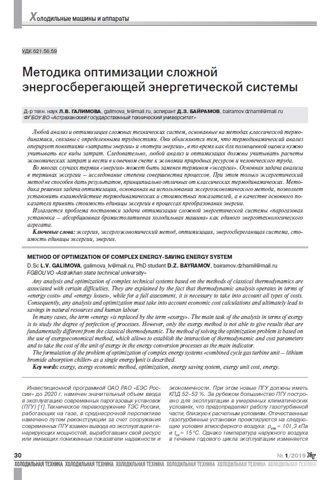 Методика оптимизации сложной энергосберегающей энергетической системы